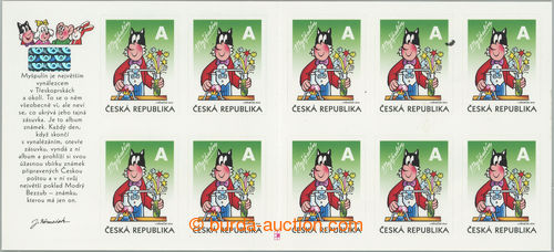 Philately. Pof.681 production flaw, Bobik value A, complete booklet, significant skidding print L inscription and stamp. in L middle booklet, on other fields smaller skidding print; exceptional offer, c.v.. shows skidding print