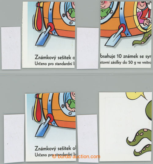 Philately. Pof.660 production flaw, Myspulin value A, comp. of 4 stamp. cut from booklets with c.v.. VV: 7/1A, 7/5A, 6/2B, 10/6B; c.v.. 1.750CZK