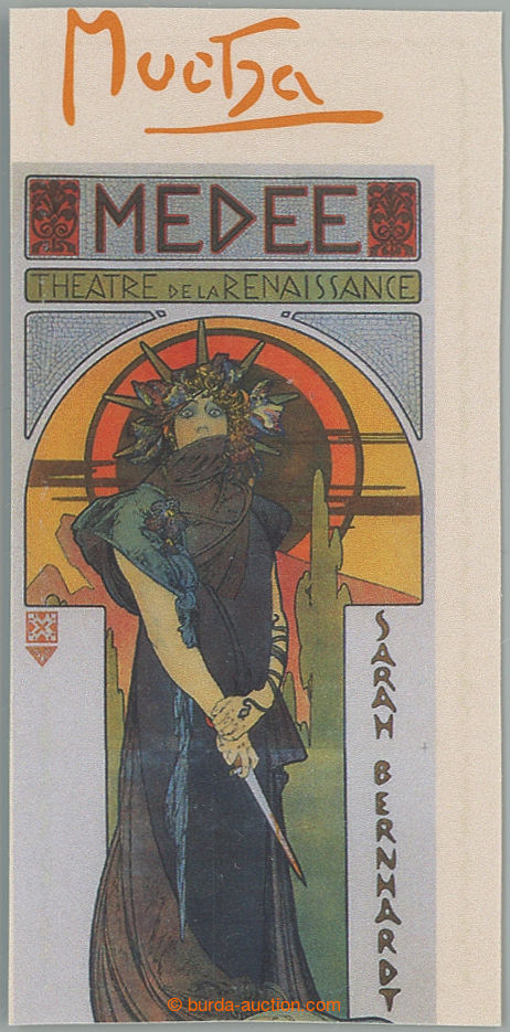 Philately. Pof.634 E production flaw, Mucha - Gismonda value E, single stamp. cut out from booklet with significant shift naseku L-wards