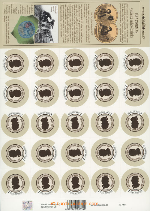 Philately. Pof.PA829-PA830, own stmp Cimrman A + Z, two complete 25-kusove counter sheet; face-value 2.250CZK (Image) (Image2)