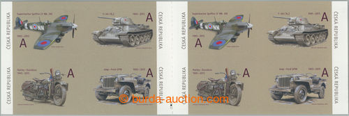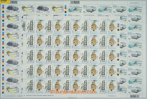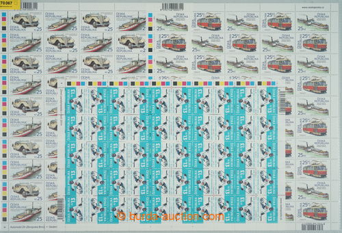 Philately. COUNTER SHEET / Pof.838-839, 903-904, 1178-1179, selection of complete 50 pcs of sheets Historical vehicles (V) and (VIII) + Exhibition LIBEREC 2022; folded in perforation, only face-value 3.850Kc (Image) (Image2)