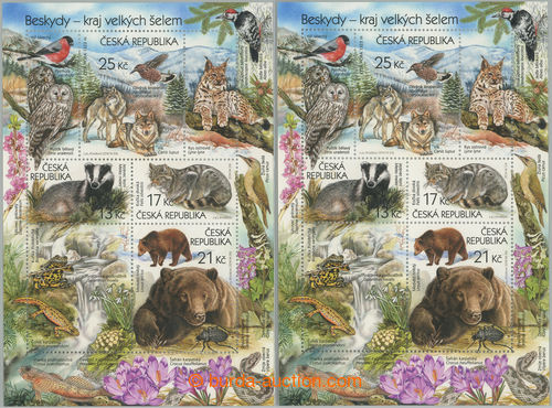 Philately. Pof.A814-817 production flaw, miniature sheet the Beskids, production flaw - strong skidding print black inscriptions + 1x standard miniature sheet; mint never hinged (Image) (Image2)