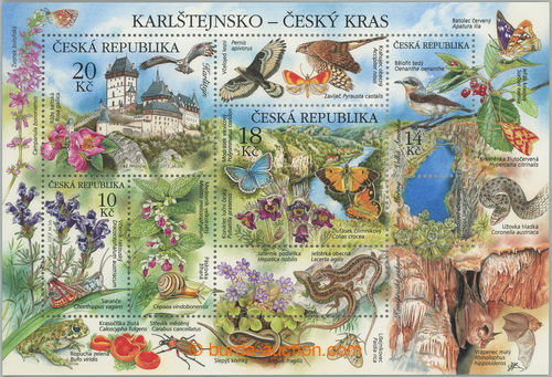 Philately. Pof.A773/776 production flaw, miniature sheet Karlstejnsko, production flaw - skidding print black color; mint never hinged, catalogue misvalues (Image) (Image2)