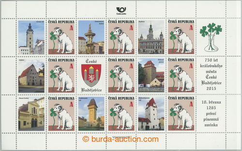 Philately. PRIVATNI PRITISK / Pof.PL796, For luck value A, private additional printing V257 - Ceske Budejovice - 750 years; printing mere 200 pcs of