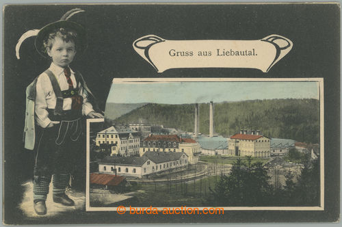 2475 imagePicture Postcards. LIBAVSKE UDOLI - (Liebauthal), collage boy in costume with view on/for factory, coloured collotype, Us; good condition, decorative (Image) (Image2) (All Images)