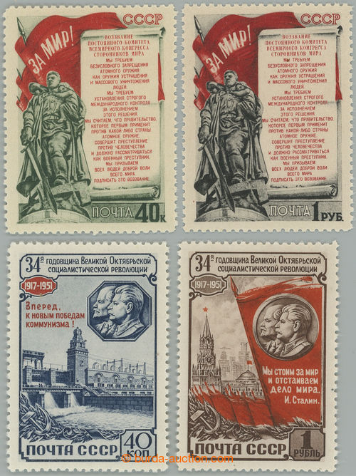 Philately. Mi.1557-1558, Mi.1599-1600, Peace congress and 34. Anniv of October Revolution; two complete sets, only Mi.1599 small production gum flaw, otherwise very fine, c.v.. 200EUR (Image) (Image2)