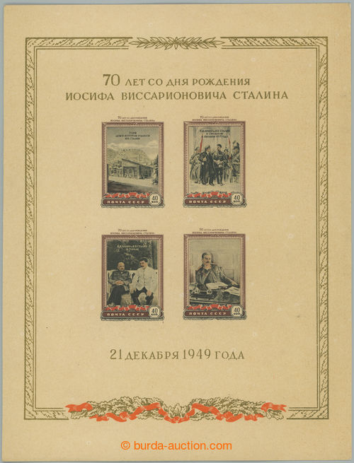 Philately. Mi.Bl.13, miniature sheet Stalin, smaller size 169x222mm; mint never hinged, overall fine, c.v.. 500EUR (Image) (Image2)