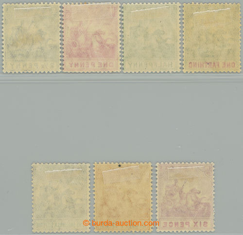 Philately. SG.145-151, 152, ¼F - 1Sh + Anniv of colony 1d; hinged, 6d small spot, c.v.. £94 (Image) (Image2)