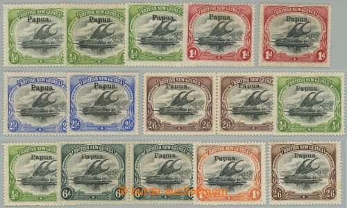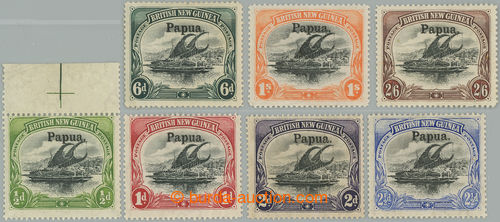 Philately. SG.18-20, 21-24, Lakatoi large overprint PAPUA 6P - 2Sh6P wmk horiz. and ½P - 2½P wmk vertical (thin paper); very fine set, c.v.. £330