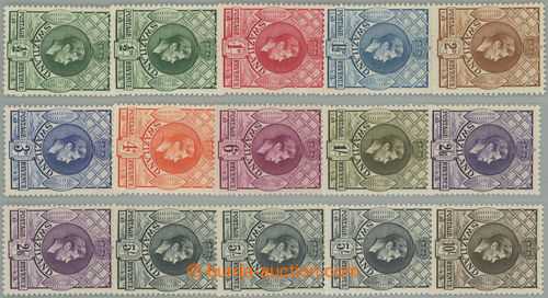 Philately. SG.28-38a, George VI. ½P - 10Sh, complete set supplemented with variants of values ½P, 2Sh6P and 5Sh; mainly hinged, c.v.. ca. £280
