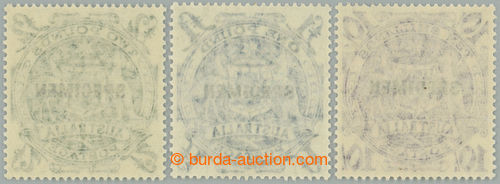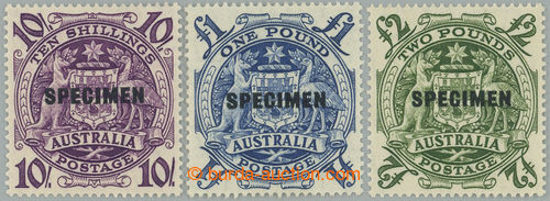 Philately. SG.224bs-224ds, Coat of arms 10Sh, £1, £2, favourite stamps with overprint SPECIMEN; F-VF, c.v.. £170 (Image) (Image2)