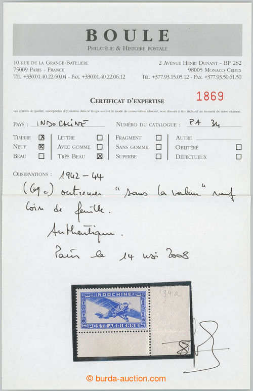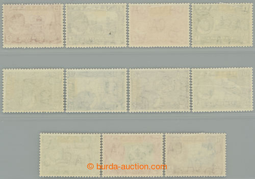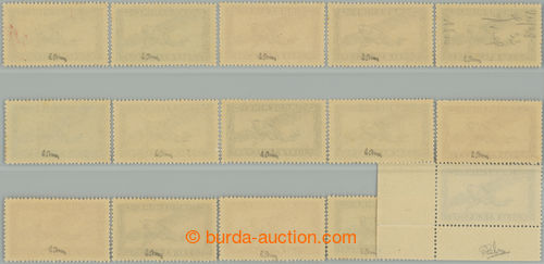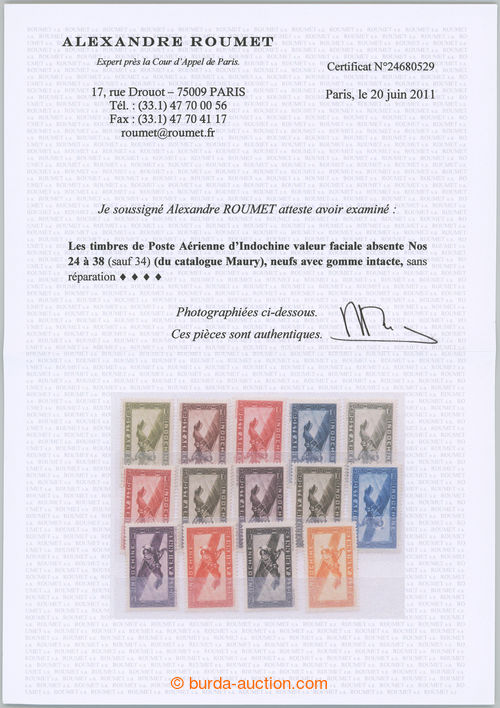 Philately. Yv.24a-38a, Airplane 5c - 10Pia, complete set of 15 stamps WITHOUT FACE VALUES, Yv.34a left corner piece; few minor faults, otherwise mint never hinged, certificate Roumet, Ceres, Boule, exp. Brun, scarce! (Image) (Image2)
