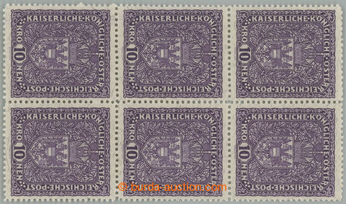 911 nh imagePhilately. POSTAGE STAMPS / VELKY FORMAT / ANK.211II, Coat of arms 10K light violet, block of 6, granite paper, landscape format; superb multiple (Image) (Image2) (All Images)