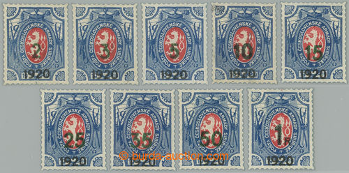 Philately. Pof.PP7-PP15, Charitable stamps - Lion 2K/1R - 1R/1R, complete set of with I. type - small sabre, II. printing; 25K and 50K (bend) light hinged, exp. by Mrnak and Vrba, sought (Image) (Image2)