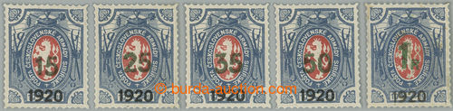 Philately. Pof.PP11-PP15, Charitable stamps - Lion 15K/1R - 1R/1R, all type II - big sabre, II. printing; only 1R light hinged, all exp. Vrba, then Hirsch, Mrnak, Tribuna (Image) (Image2)