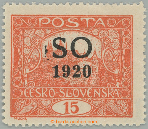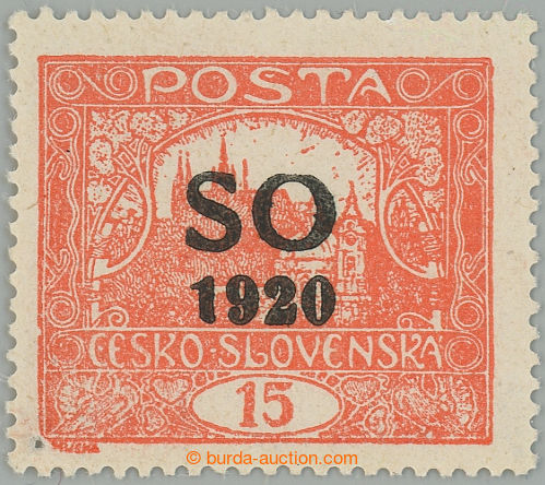 Philately. Pof.SO5A STk+p, Hradcany 15h bricky red with comb perforation 13¾ : 13½, spiral type I and bar type II.; mint never hinged, small/rare perforation in LL corner, exp. Vrba (Image) (Image2)