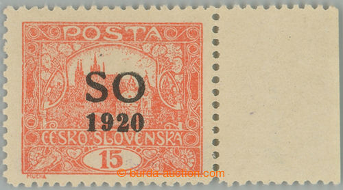 Philately. Pof.SO5E, Hradcany 15h bricky red with line perforation 11½ : 10¾ with right/genuine margin; mint never hinged, exp. by Gilbert and Vrba