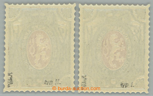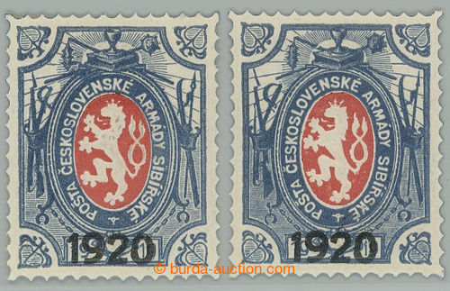 Philately. Pof.PP6, Charitable stamps - lion with black additional-printing 1920, comp. 2 pcs of - types I + II - short and long sabre; exp. Vrba