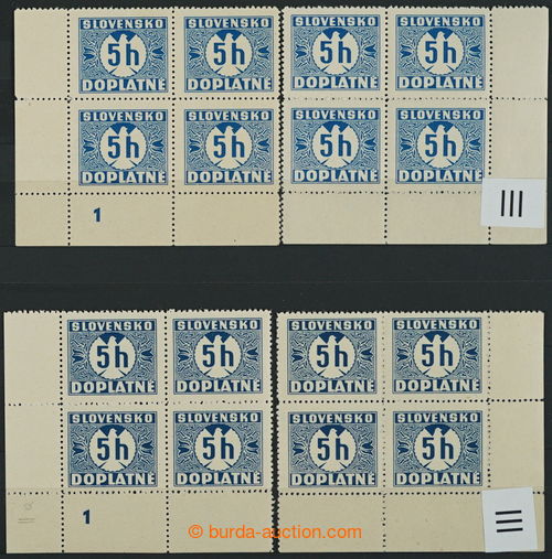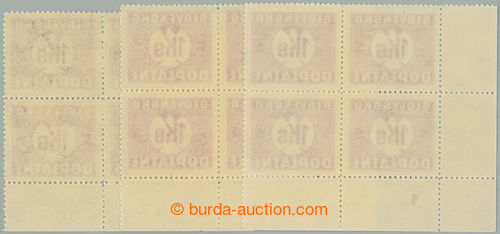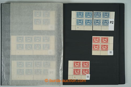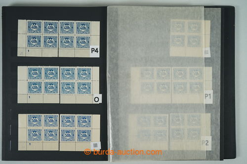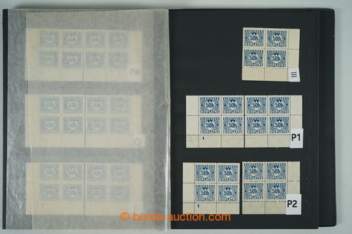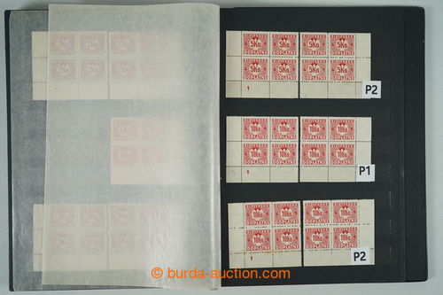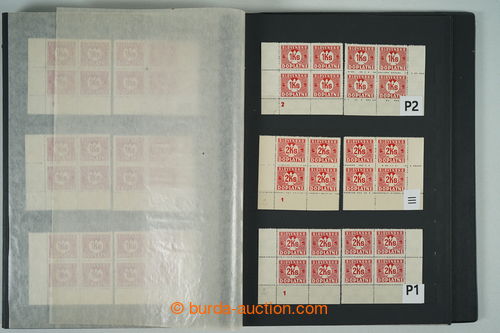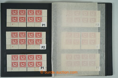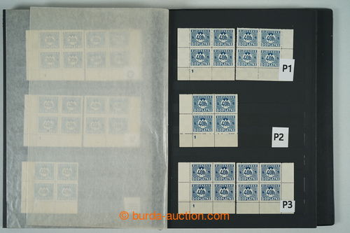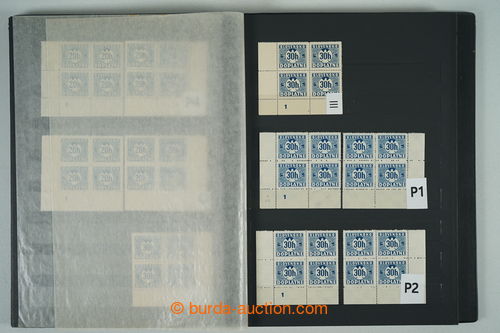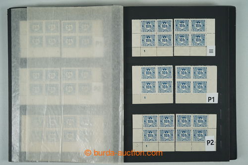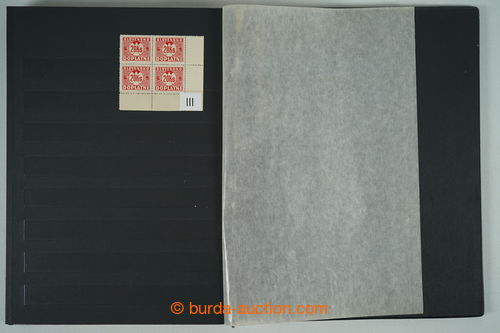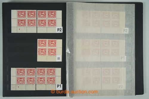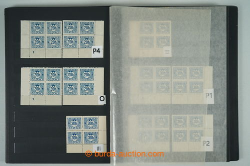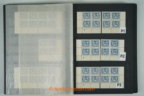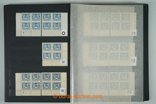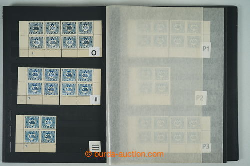 1513 nh imagePhilately. [COLLECTIONS] PLATE NUMBERS / Sy.D1-D12, Postage due stmp 1939, extensive semifinished collection bottom corner blk-of-4 with also without watermark, various gum with also without grid, various plate number, solidne contains incl. rare values (1 Koruna, 2 Koruna, 10K and 20K); mint never hinged, sporadically slightly povolena perf, otherwise nice quality, placed in 9-sheet stockbook A4, all described, extraordinary offer! (Image) (Image2) (Image3) (Image4) (Image5) (Image6) (Image7) (Image8) (Image9) (Image10) (Image11) (Image12) (Image13) (Image14) (Image15) (Image16) (Image17) (Image18) (Image19) (All Images)