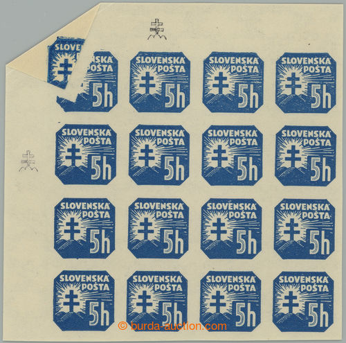 1501 og imagePhilately. Sy.NV11Y production flaw, Coat of arms (II) 5h blue, wmk P1, L upper corner blk-of-16 with significant folded paper on pos. first hinge; in the place folded paper, decorative (Image) (Image2) (All Images)