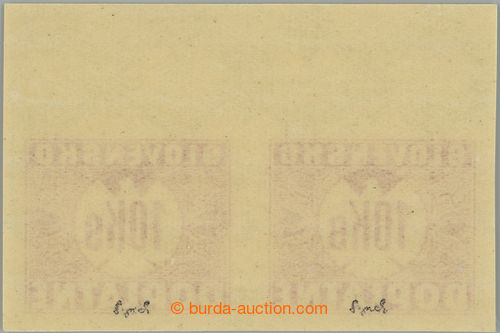 1509 nh imagePhilately. Sy.NZD11YN, Postage due stmp (II) 10 Koruna red, wmk P2, imperforated upper horizontal pair; mint never hinged, exp. Synek (Image) (Image2) (All Images)