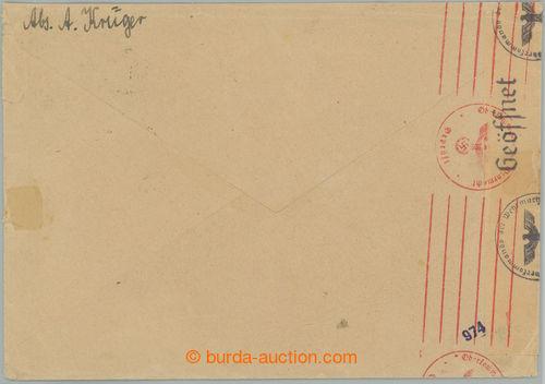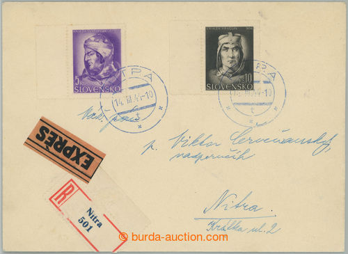 1517 imagePhilately. MODRE CDS / NITRA/ 14.III.44/t/ CDS in blue color in funkci special postmark to 5. Anniv independence, on/for philatelically motivovanem Reg letter in the place, with issue Princes 5 + 10 Koruna, 3x print blue CDS; hints after sticking on/for R-nalepce, rare occurrence blue dennich postmarks! (Image) (Image2) (All Images)
