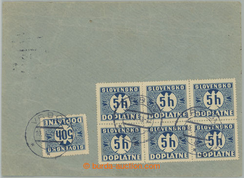 1511 imagePhilately. insufficiently franked letter sent from Kezmarok to Eisendorfu (Vrbov) stamp. 60h with CDS KEZMAROK 8.I.41, burdened with postage-due 80h, on reverse mounted Postage due stamp 50h + block of 6 5h, Sy.D6, D1 with CDS VRBOV 10.I.41; folds in envelope (Image) (Image2) (All Images)