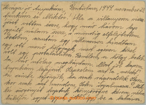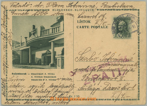 1519 imagePhilately. CDV13/15, pictorial PC Razus 1Ks to Budapest with CDS BRATISLAVA 2/ 24.XI.44, sent back with straight line postmark Doprava zastavena/ Zpat vzhledem postupu fronty v Madarsku; folds and toned, viewing of quality recommended (Image) (Image2) (All Images)