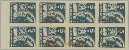 1571 nh imagePhilately. Pof.355 production flaw, 5 Koruna dark grey, the bottom marginal vertical block of 8 with production flaw - NASTAVENY PAPER through/over 2 stamp.; production fold in paper on/for upper sheet, otherwise very fine, very rare, exceptional usage nastavovaneho paper on this issue! (Image) (Image2) (All Images)