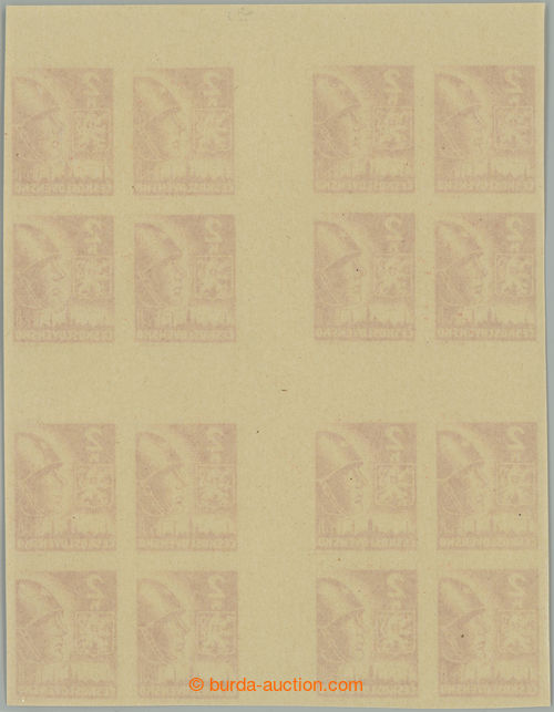 1576 nh imagePhilately. COUNTER SHEET / Pof.358, complete 120 pcs of sheet values 13 Koruna brown, plate 2, contains all plate variety, mixed pin holes etc..; unfolded, sporadically minor faults (very slightly toned in margin, slightly povoleny pin hole), minor gum fault, overall but very nice quality mint never hinged, very rare, complete sheets occur only quite exceptionally, extraordinary offer! (Image) (Image2) (All Images)