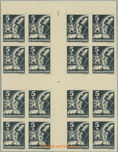 1577 nh imagePhilately. COUNTER SHEET / Pof.359, complete 120 pcs of sheet values 20K blue, plate 2, contains all plate variety, mixed pin holes etc..; unfolded, sporadically minor faults (very slightly toned in margin, slightly povoleny pin hole), minor gum fault, quite little pulled up lower margin, overall but very nice quality mint never hinged, very rare, complete sheets occur only quite exceptionally! (Image) (Image2) (All Images)
