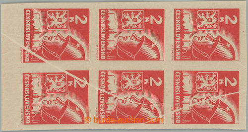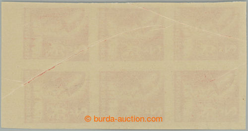 1569 nh imagePhilately. Pof.354 production flaw, 2 Koruna red, the bottom marginal block-of-6 with sikmymi paper crease through/over 5 stamp.; mint never hinged, decorative (Image) (Image2) (All Images)