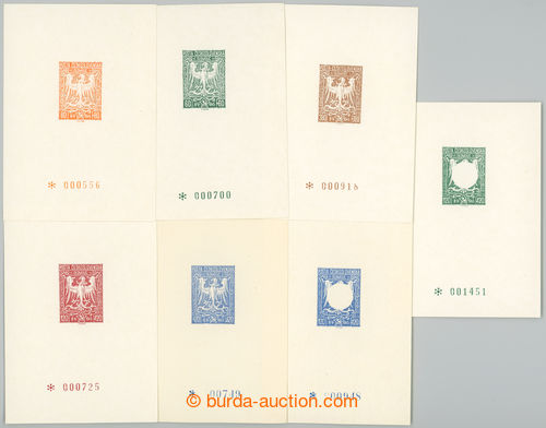 1565 ng imagePhilately. OLOMOUC / complete set of 5 pcs of miniature sheets with stamp. Moravska eagle + 2x value 120h green and blue with anulaci round hole; very fine, it is supplementary exhibition print from 70. years (Image)