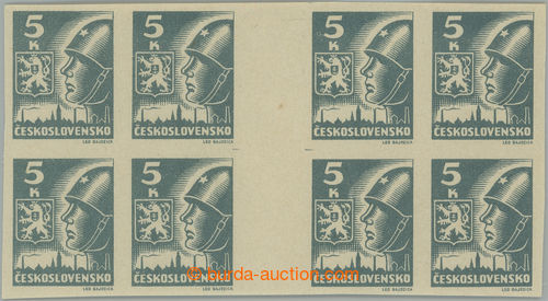 Philately. MEZIARSI / Pof.355b Ms(4), 5 Koruna light grey, block two joined horiz. 4-stamp gutter.; mint never hinged, chip of wood in paper, significant light color shade! (Image) (Image2)
