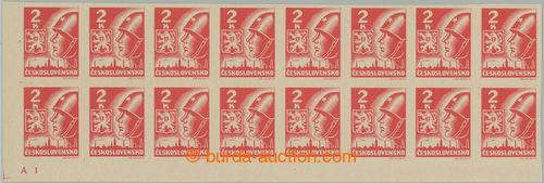 Philately. DESKOVE ZNACKY / Pof.354 plate mark, 2 Koruna red, L the bottom corner horiz. blk-of-16 with plate mark A1, plate C; very nice quality mint never hinged (Image) (Image2)