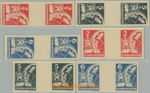 Philately. MEZIARSI / Pof.354-356Ms(2)+Mv(2), 2K-6K, complete set of vertical and horiz. 2-stamps gutter.; vertical value 5 Koruna minor gum fault, otherwise nice quality (Image) (Image2)