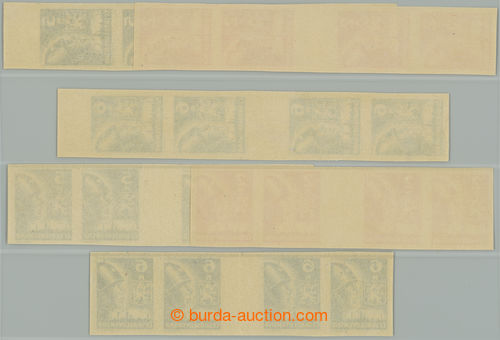 Philately. MEZIARSI / Pof.354-356Mv(4), Ms(4), 2K-6K, complete set vertical and horiz. 4-stamp gutter., vertical 5 Koruna shade grey-black, 6 Koruna horiz. dark blue; vertical 2 Koruna without upper margins, overall fine mint never