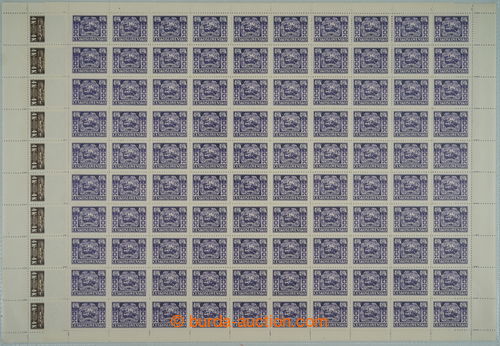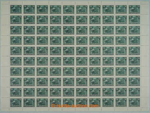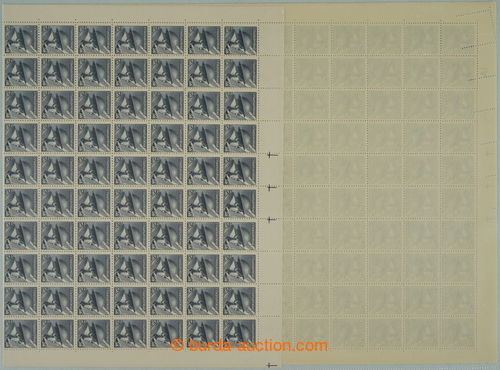 Philately. COUNTER SHEET / 1. anniv of Slovak National Uprising, Pof.403-407, complete set of in whole 100 stamps sheets; folded only in perforation, sporadically slightly allowed in perforation, otherwise very nice quality,