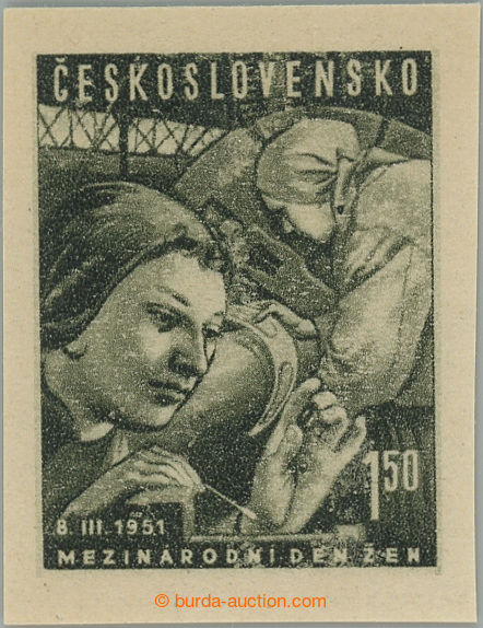 Philately. Pof.578N, International Women's Day 1,50Kcs black-green, imperforated; mint never hinged, c.v.. 4.000CZK, mark Pofis (Image)