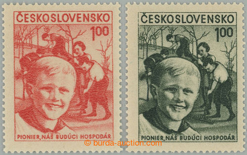 Philately. UNISSUED / PLATE PROOF refused design/sketch on stmp issue Mladez, Pioneer mas future hospodar, comp. 2 pcs of stamp. values 1Kcs in/at orange and green color on stamp paper with gum; mint never hinged (Image) (Image2)
