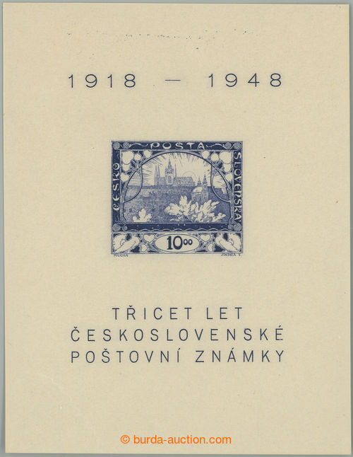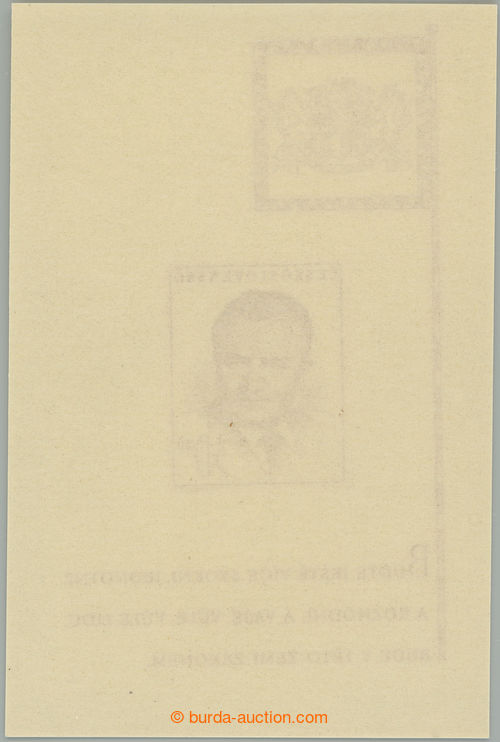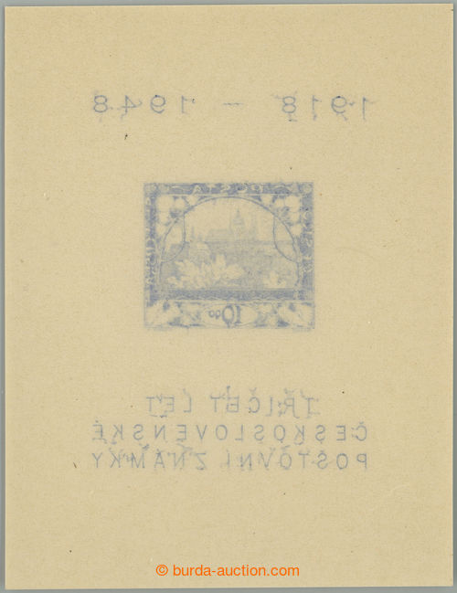 Philately. Pof.A497 production flaw, miniature sheet 30 y of Czechosl. Stamp with full offset on gum; interesting (Image) (Image2)