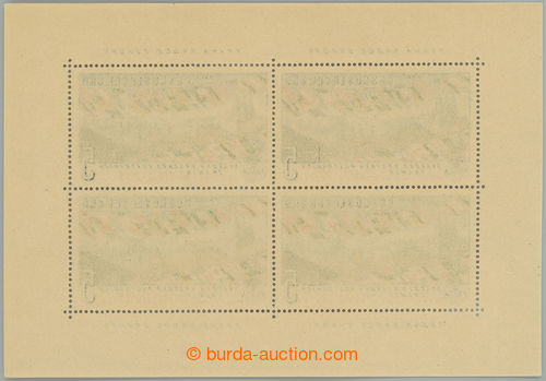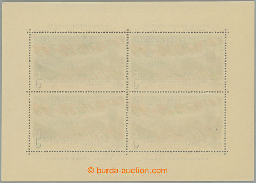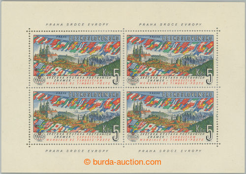 Philately. Pof.A1216A, miniature sheet PRAGA 1962, linen, plate A with plate variety - point after/behind numeral 5 on pos. 1, size 141x100mm; very fine (Image) (Image2)