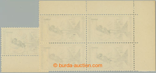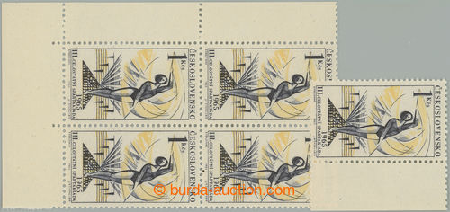 Philately. Pof.1446 production flaw, III. Spartakiad 1 Koruna, LL corner blk-of-4 with shift yellow color downward + common piece for comparison; mint never hinged, interesting (Image) (Image2)