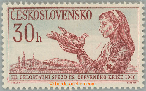 Philately. Pof.1117DV, III. congress Czechosl. Red Cross 30h, stamp. with plate variety - oblique line below chin girl - curb on pos. 50/2; mint never hinged (Image) (Image2)