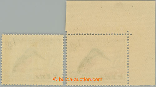 Philately. Pof.1084, Birds Lednacek 1,20Kcs, corner stamp. type II + stamp. type I with plate variety 3/1 - stain in branches; mint never hinged