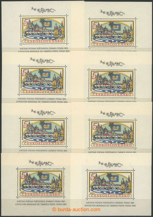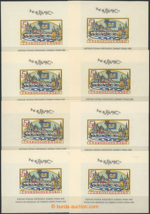 Philately. Pof.A1268A+B, miniature sheet PRAGA 1962, set of all types from both editions, total 16 pcs of miniature sheets; sporadically usual small production gum flaw, otherwise very fine, c.v.. 9.000CZK (Image) (Image2)