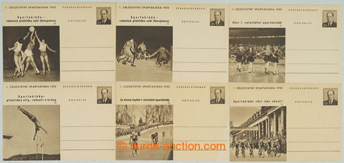Philately. CDV123/1-15A, Spartakiad 1955, complete set of 15 pcs of Un pictorial post cards, 1. issue - distance stamp. from 1. line 29mm; 13x on reverse date date stamp, otherwise very nice quality, c.v.. 1.600CZK (Image) (Image2)