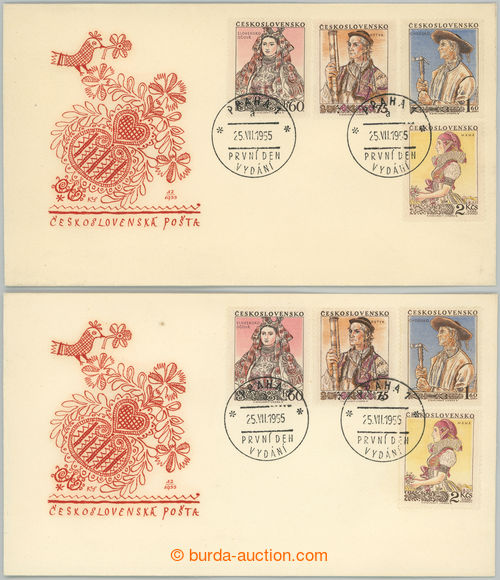 Philately. FDC 10/55b+c, National costumes I., two envelope/-s, 1x with mounted stamp. Pofis. 840 type II and 1x Pof.842 T II.; without defects