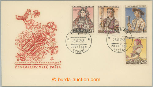 Philately. FDC 10/55f, National costumes I., envelope with stamps Pof.840 and 843 both type II.; perfect condition (Image) (Image2)