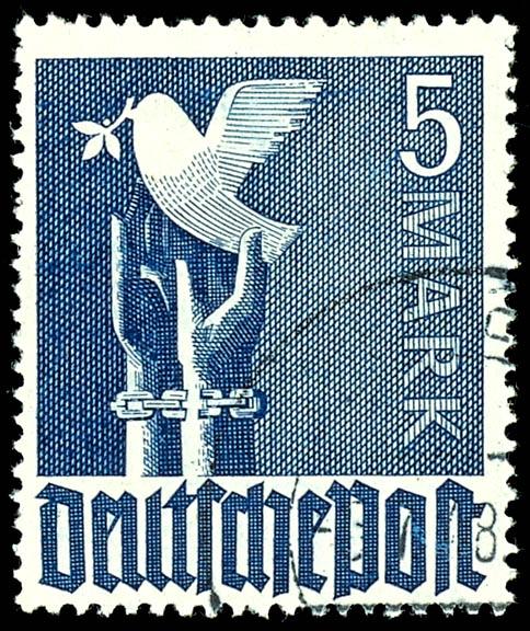 60 pfennigs Leipzig fairground 1947, D-perforation, watermark variety IZ "steps flat falling", neat circle cancelled from left margin. expertized Schlegel BPP. Michel 350.- (942DZI) 60 Pfennig Leipziger Messe 1947, D-Zähnung, Wasserzeichenabart IZ "Stufen flach fallend", sauber rundgestempelt vom